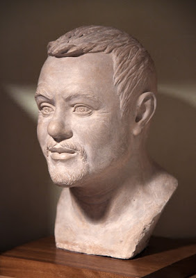 La magnífica escultora y grabadora barcelonesa Mercè Riba me retrata en un busto después de ser retratada por mi.